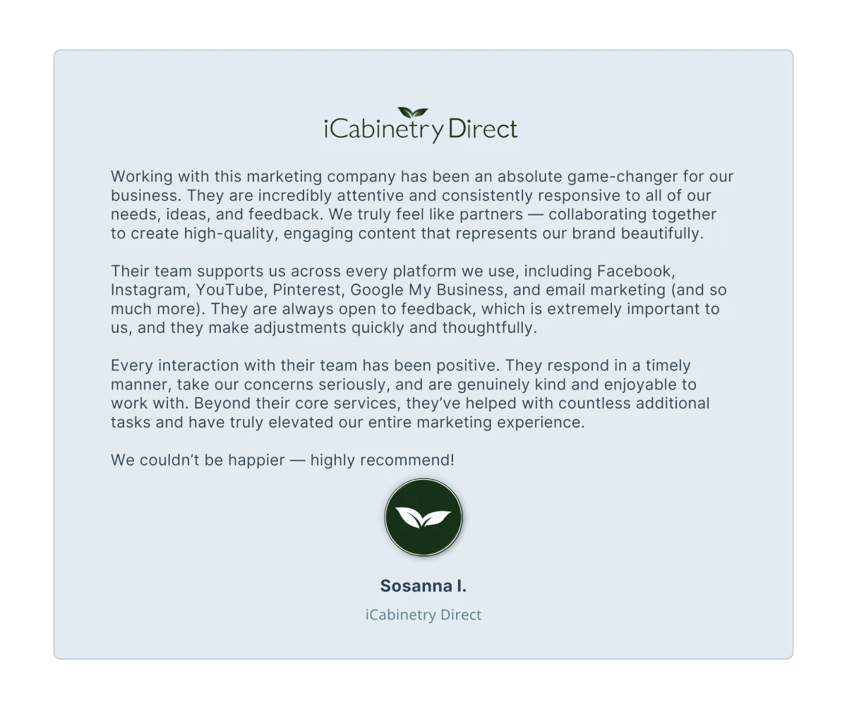 Stand out with a custom website and scroll-stopping social media content. Our Creative Hub brings your brand to life—done for you, effortlessly.